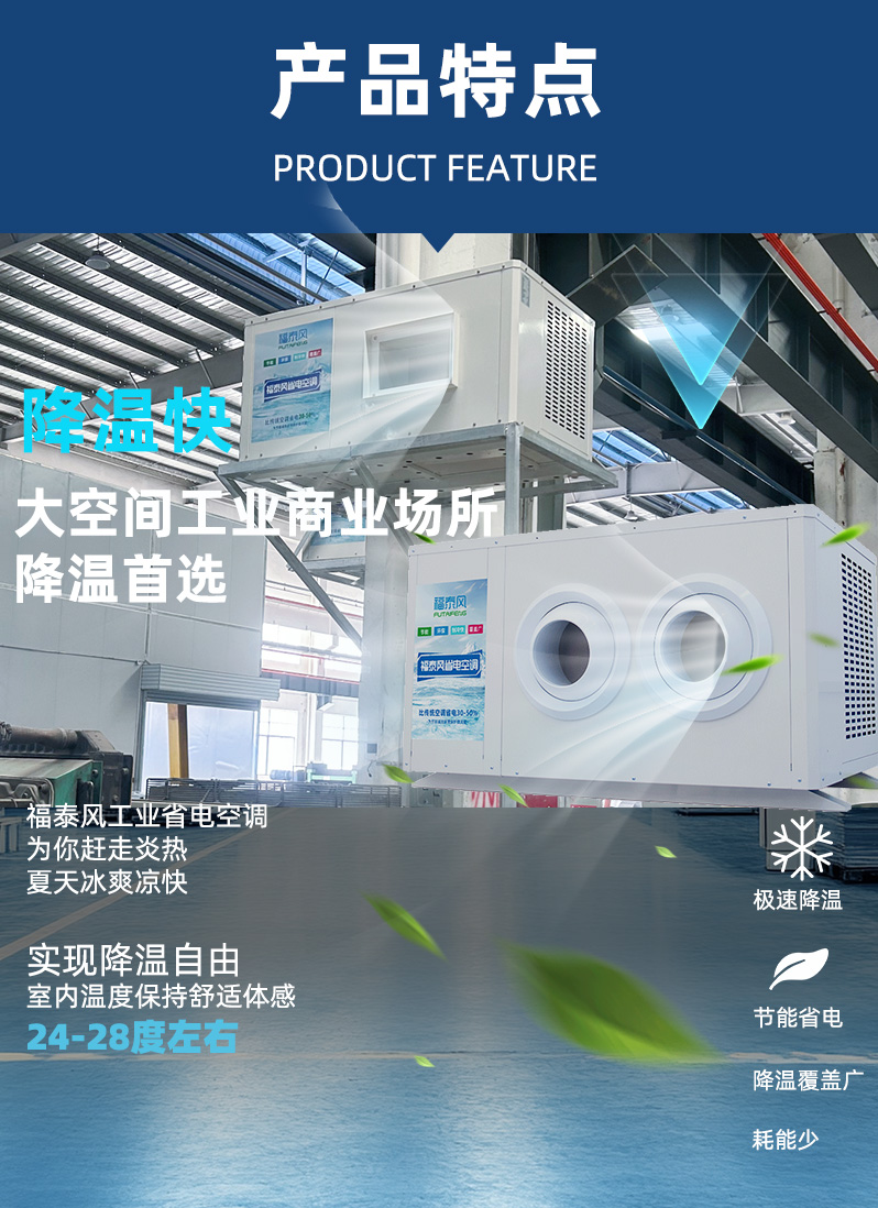 省電同時(shí)覆蓋面積比傳統(tǒng)空調(diào)面積大3倍,安裝便捷,維護(hù)便捷。受到工業(yè)商業(yè)場所降溫的青睞!