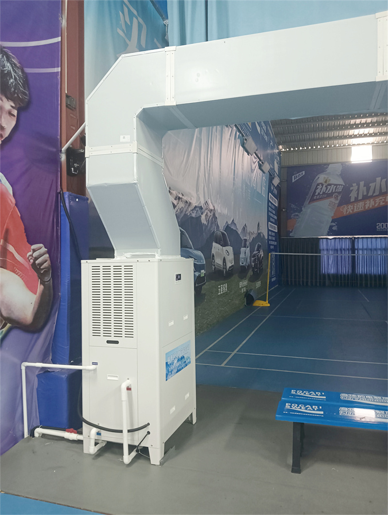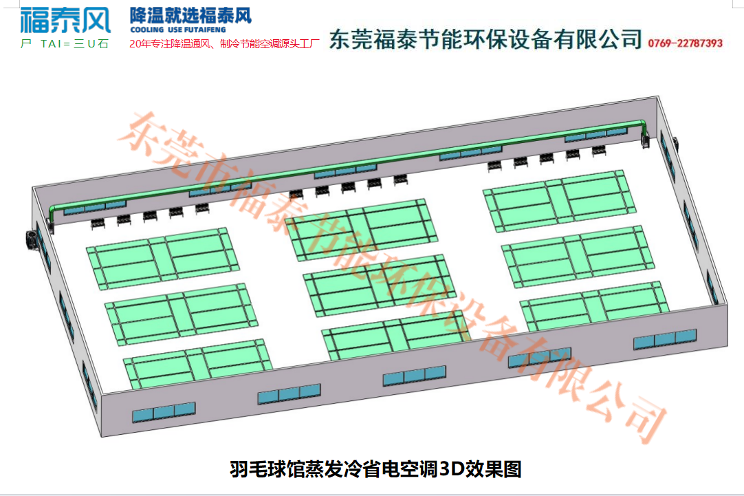 羽毛球館作為高空間、大跨度的運動場所,普遍存在以下高溫問題:一是場館空間封閉,夏季太陽輻射透過屋頂和側(cè)窗進入室內(nèi),熱量易積聚且難以自然散發(fā);二是運動過程中,球員身體產(chǎn)熱量大,加上場館內(nèi)通風(fēng)不暢,導(dǎo)致室內(nèi)溫度持續(xù)升高,通常夏季室內(nèi)溫度可達 32-38℃;三是傳統(tǒng)風(fēng)扇等降溫設(shè)備僅能實現(xiàn)空氣流動,無法有效降低環(huán)境溫度,且易形成局部強風(fēng),影響羽毛球飛行軌跡,干擾運動體驗。