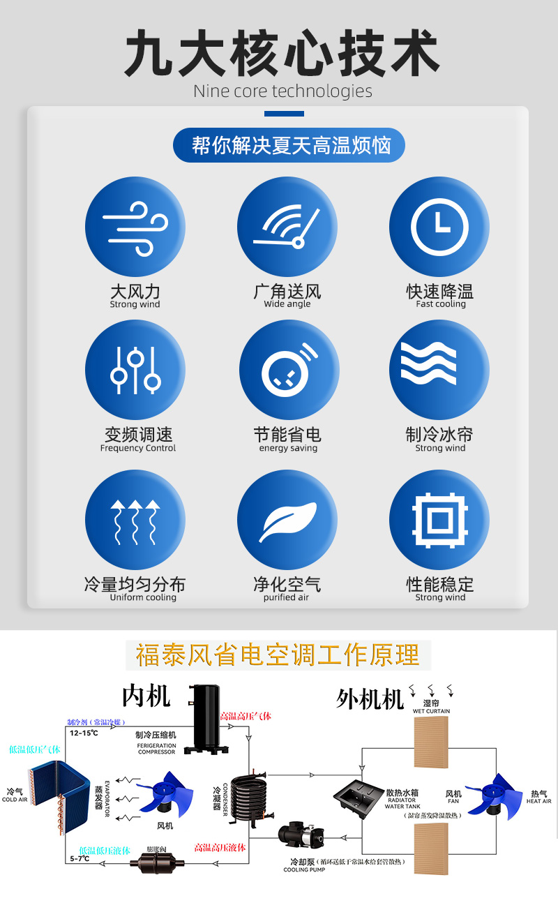 大型車間內(nèi),局部工位高溫問(wèn)題突出:高頻焊接區(qū)熱浪滾滾、熱處理爐旁炙烤難耐、注塑機(jī)周邊悶熱黏膩……傳統(tǒng)空調(diào)要么覆蓋全車間能耗驚人,要么局部降溫效果差,工人苦不堪言,設(shè)備因過(guò)熱頻繁故障。工業(yè)省電空調(diào)射流款專為車間局部降溫設(shè)計(jì),以“精準(zhǔn)定向制冷+15米超遠(yuǎn)送風(fēng)+智能變頻省電”三大核心優(yōu)勢(shì),成為高溫工位的“清涼救星”!